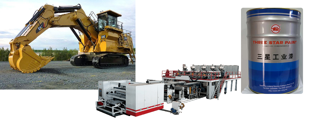 表面涂裝對(duì)于工程機(jī)械和車輛的裝飾和保護(hù)發(fā)揮著重要作用,作為福建少數(shù)能提供全系列工程機(jī)械涂料產(chǎn)品的企業(yè)之一,三星精細(xì)化工通過技術(shù)引進(jìn)和自主研發(fā),開發(fā)了包括丙烯酸面漆,醇酸面漆,醇酸底漆,環(huán)氧底漆,耐高溫涂料,化工防腐管道涂料,防火防潮涂料,水電鋼構(gòu)涂料,等系列一整套工程機(jī)械涂料產(chǎn)品,具有適用性廣、性能優(yōu)越的特點(diǎn),能完全滿足各種類型工程機(jī)械對(duì)涂裝涂層的要求。